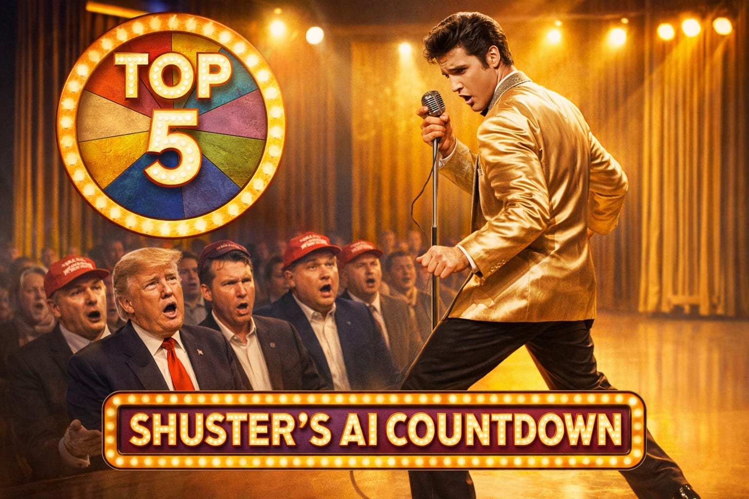 But the top two are something else entirely. An AI Elvis takes the Ed Sullivan stage to sing about gas prices and drone strikes in the style of “Suspicious Minds.” And the number one clip—a YMCA parody that rips through MAGA, Mar-a-Lago, Hegseth, and the whole GD Trumper circus—is the kind of thing you’ll watch twice…and then twice more, and then send to everyone you know.